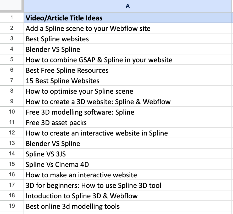 Here is content planned so far.