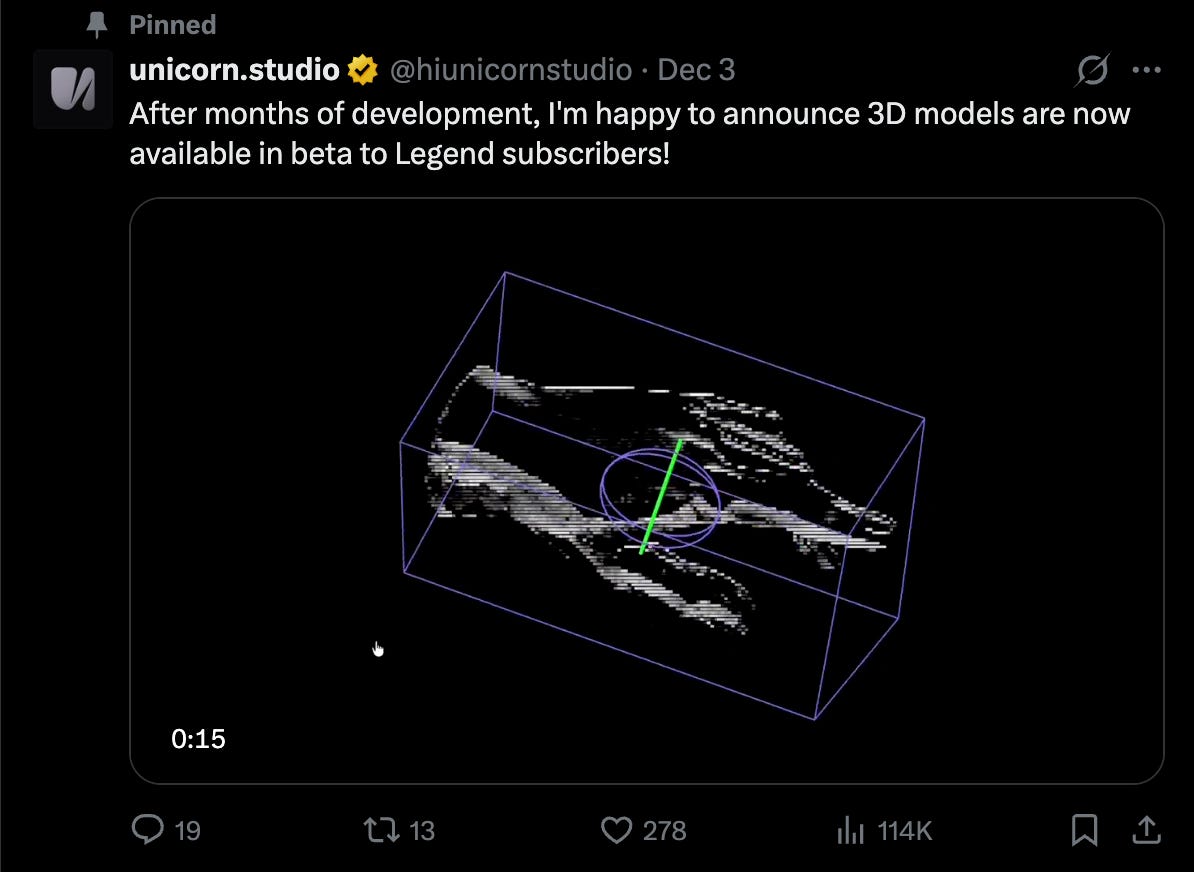 3) Unicorn Studio now has 3D models
