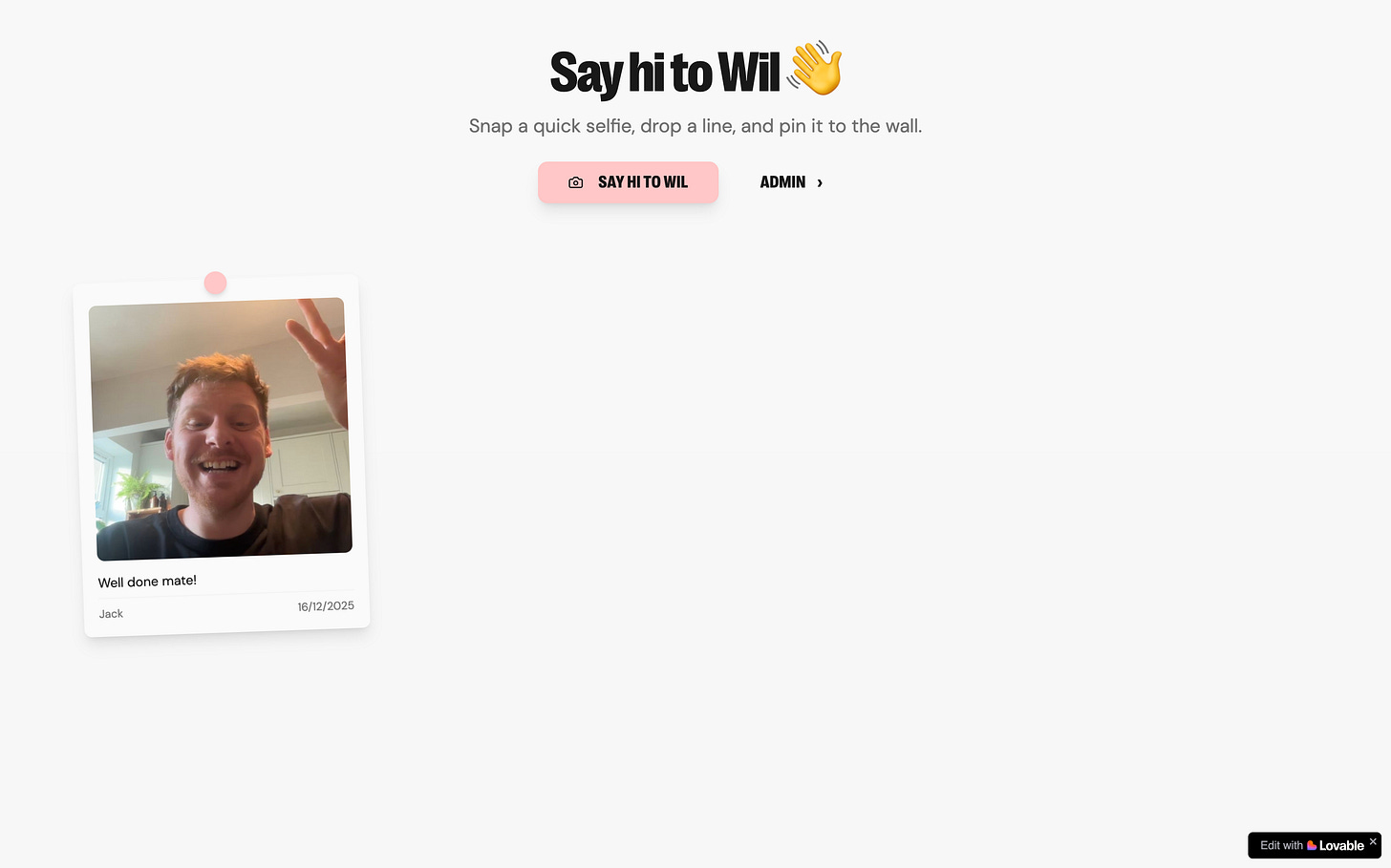 Bring the key to the lock and it will open this - a pin board where website visitors can leave a note for Wil!