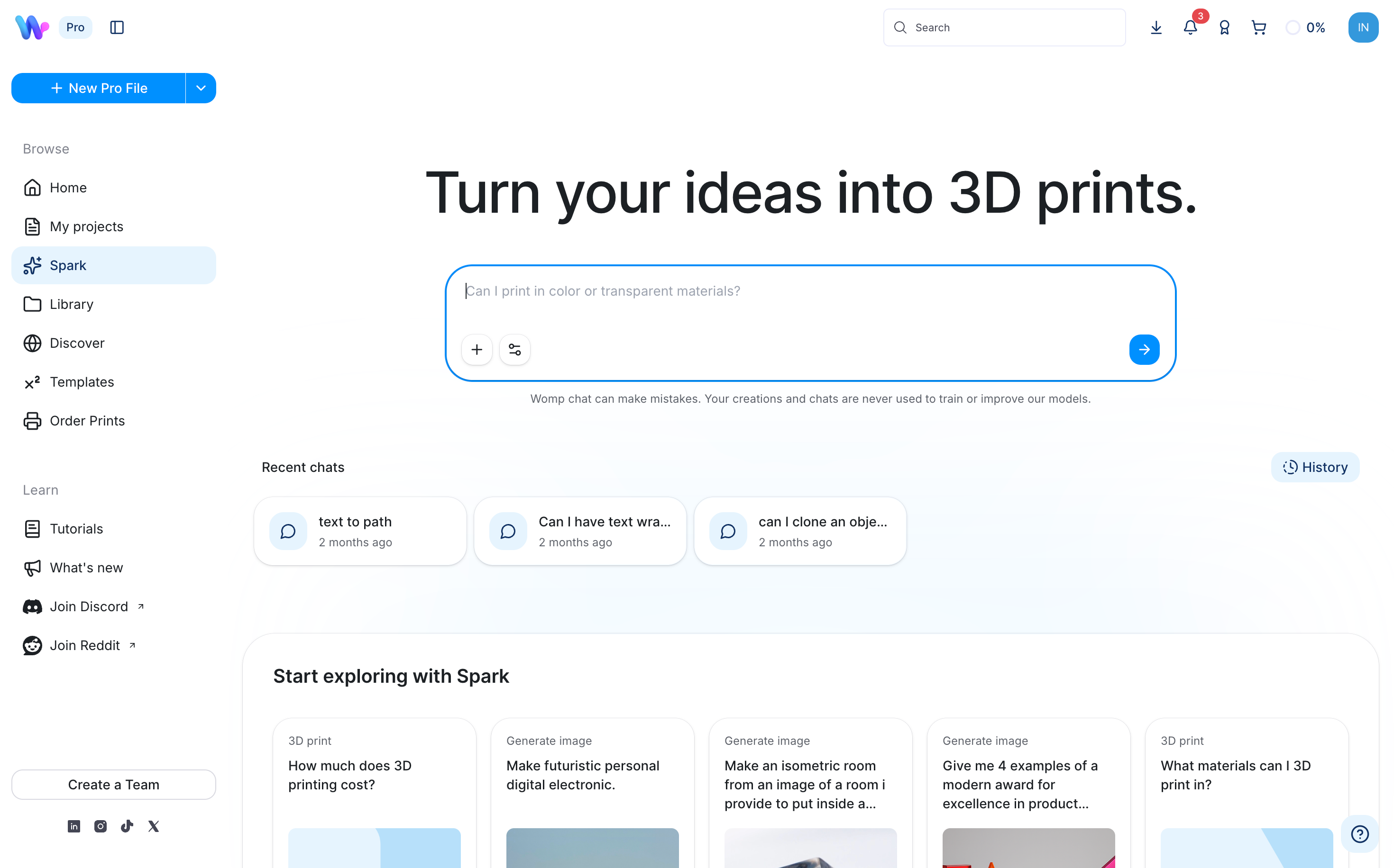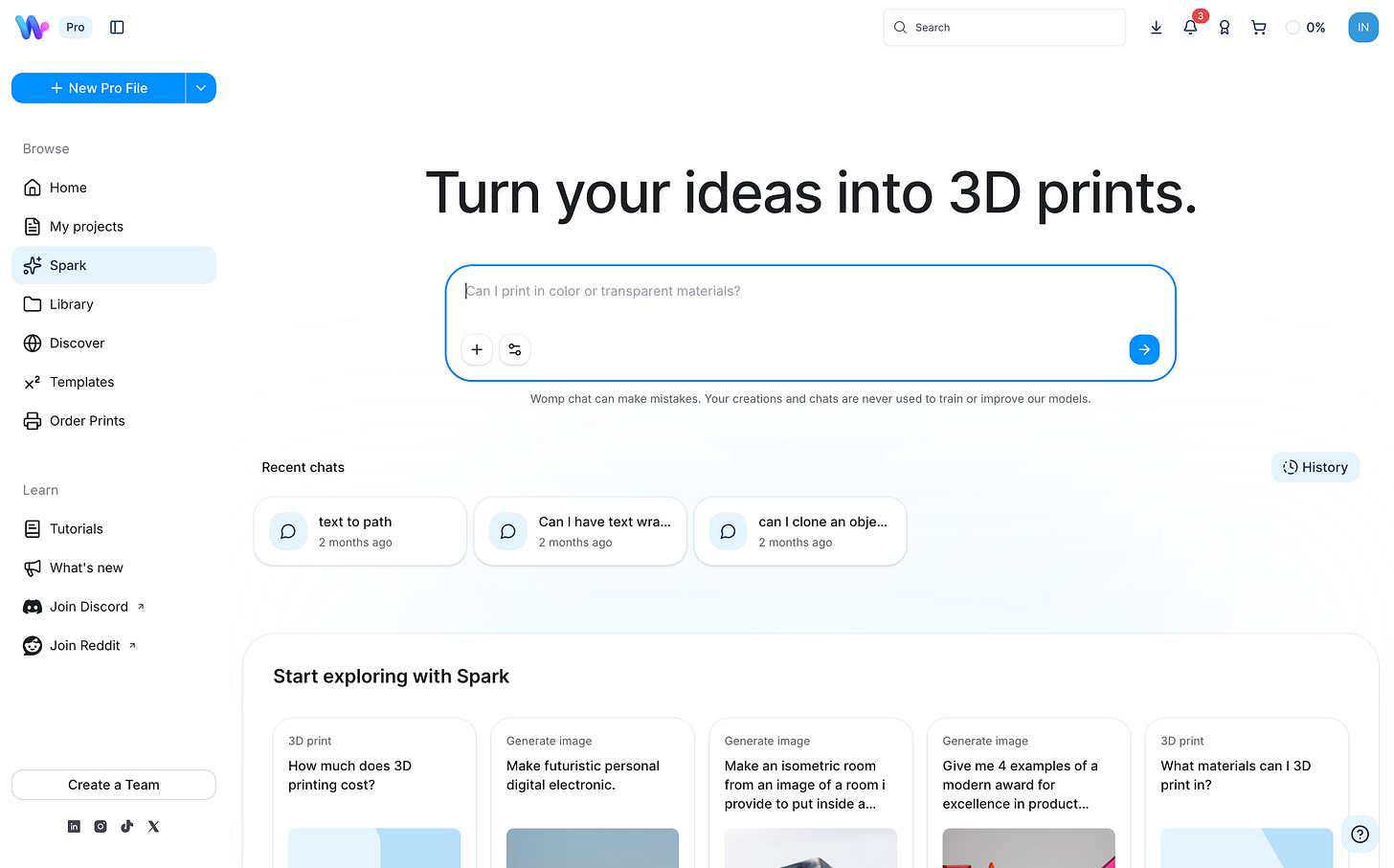 2) Womp is leaning heavily into AI-powered 3D creation: Womp Spark