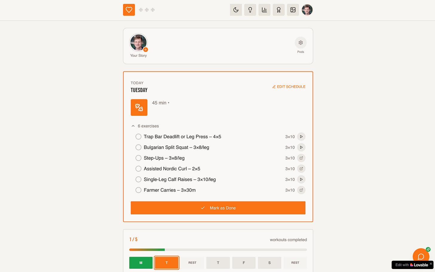 You can invite a small group of friends to create a “pod,” and then you do workouts to gain points. There’s badges, streaks and, eventually, discount codes.